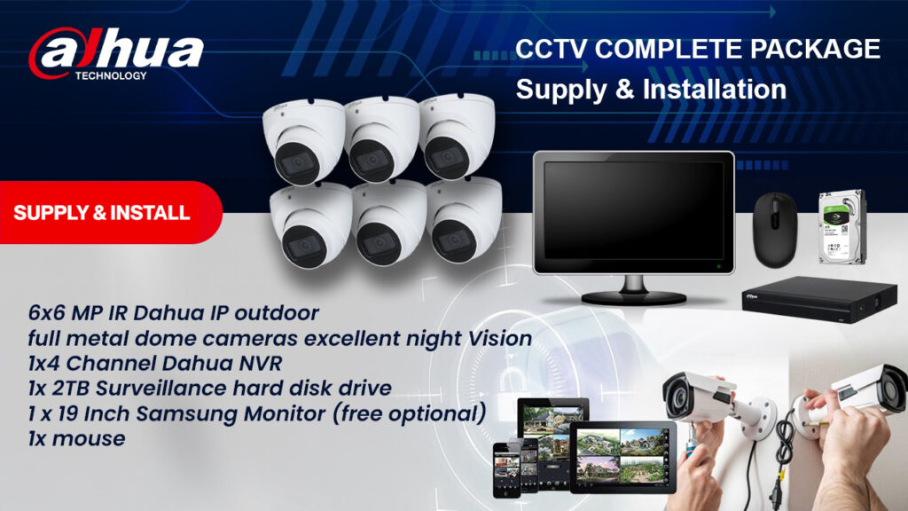 • Supply and installation of 6 x Dahua 6MP IR Fixed focal Eyeball WizSense Starlight Ai Network Camera 2.8mm Lens