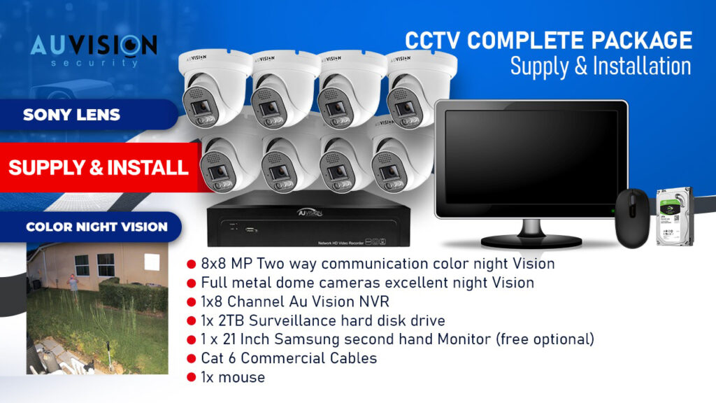 Do not wait for trouble to find you. Choose an AU Vision 8MP audio security CCTV package today and enjoy expert installation tailored to your needs. Contact us to protect what matters most with the best home and business surveillance systems in Australia. Book now and sleep better tonight.