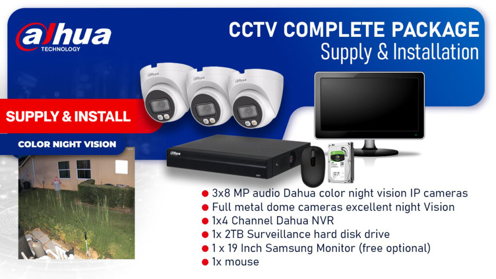 Dahua 3 x 8 MP Full Color night vision Audio Turret CCTV PACKAGE
