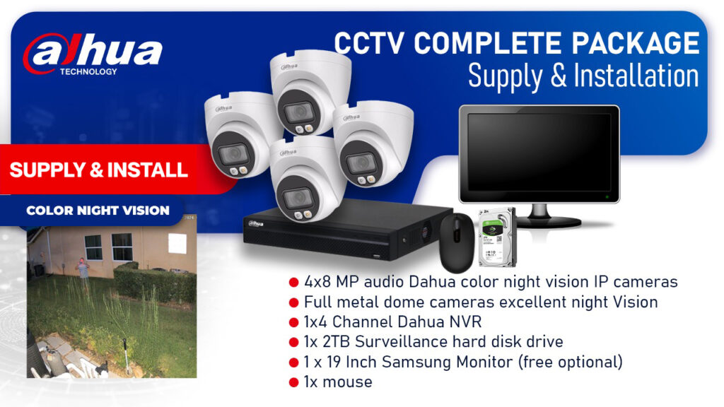 Dahua 4 x 8 MP Full Color night vision Audio Turret CCTV PACKAGE