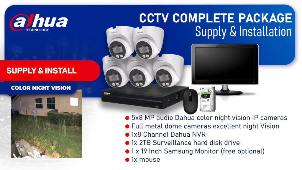 Dahua 5 x 8 MP Full Color night vision Audio Turret CCTV PACKAGE