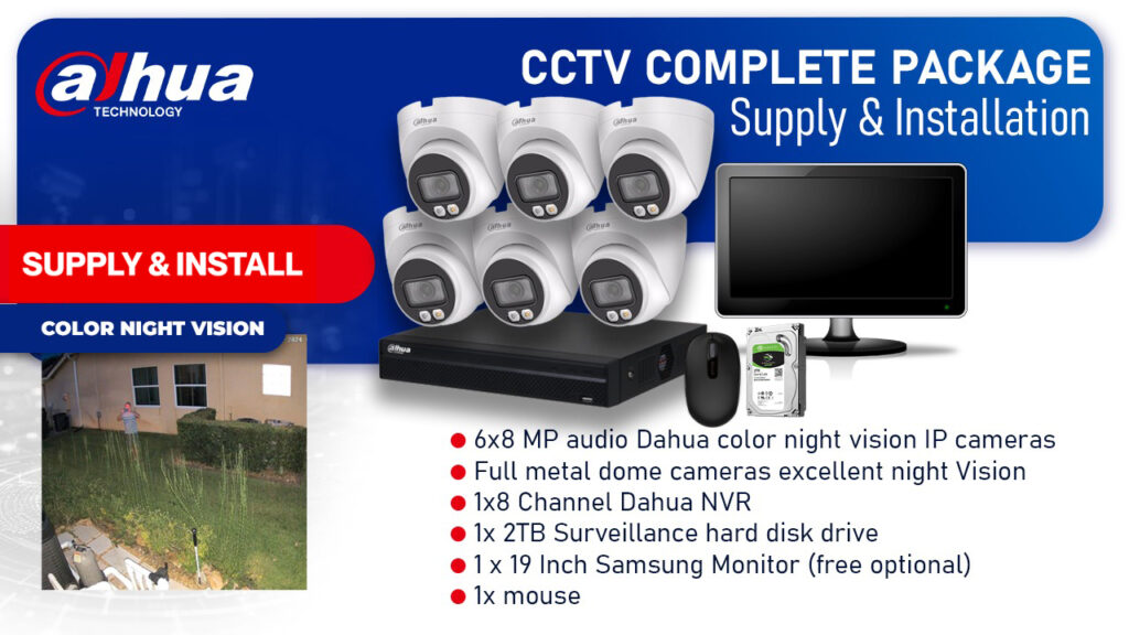Dahua 6 x 8 MP Full Color night vision Audio Turret CCTV PACKAGE