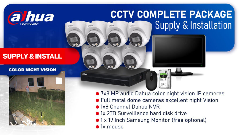 Dahua 7 x 8 MP Full Color night vision Audio Turret CCTV PACKAGE