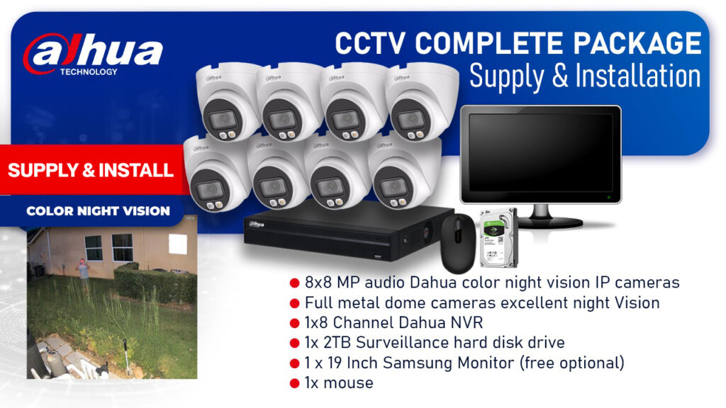 Dahua 8 x 8 MP Full Color night vision Audio Turret CCTV PACKAGE