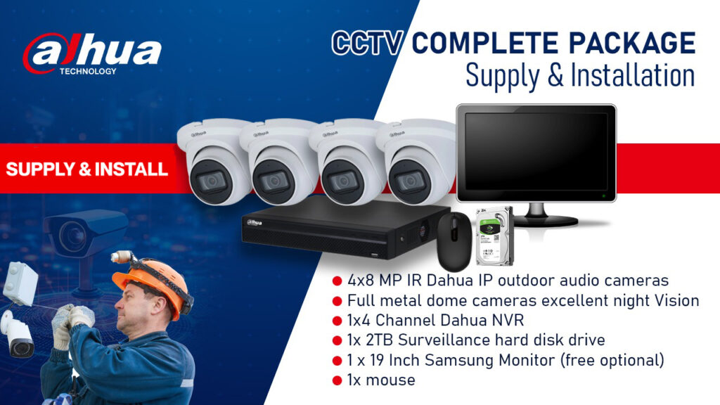 Dahua 4 x 8 MP Starlight Audio Turret CCTV PACKAGE