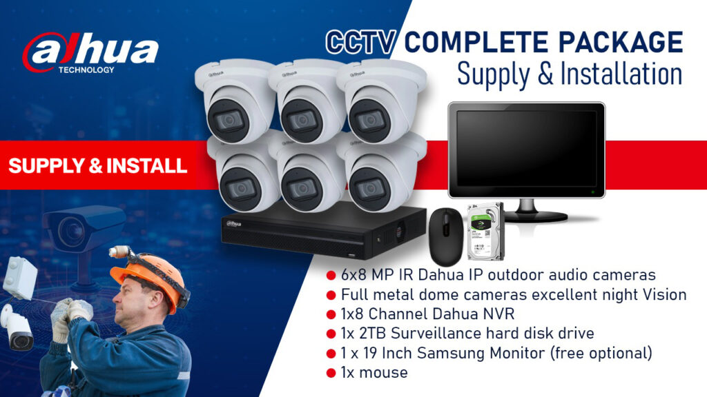 Dahua 6 x 8 MP Starlight Audio Turret CCTV PACKAGE