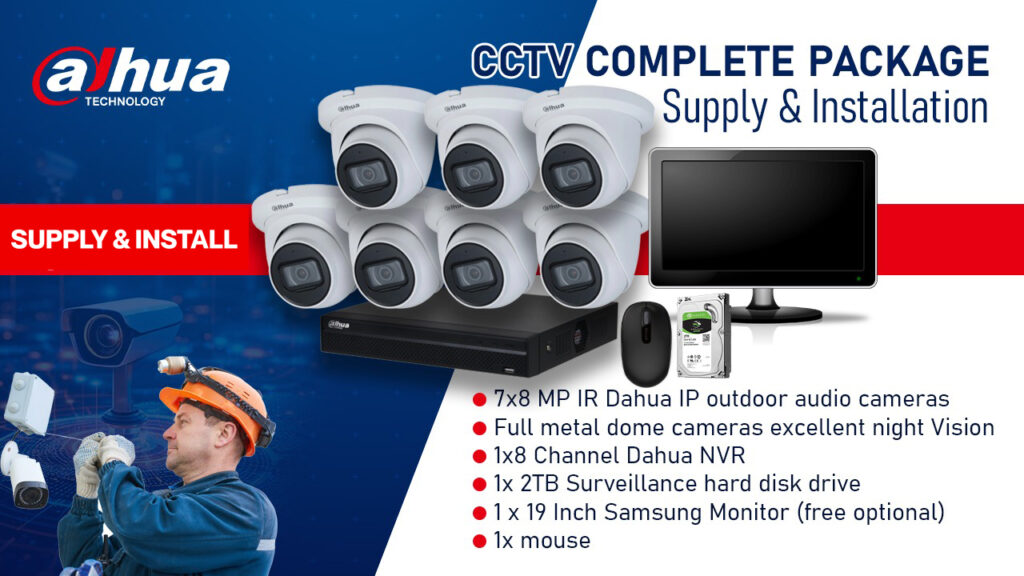 Dahua 7 x 8 MP Starlight Audio Turret CCTV PACKAGE